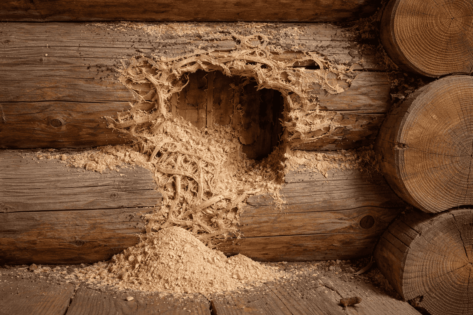 Жук-точильщик — один из самых распространенных вредителей древесины в домах, банях, на дачах и в хозяйственных постройках. Чаще всего его присутствие замечают не сразу: насекомые живут внутри дерева и долгое время остаются незаметными. Когда же появляются характерные отверстия и древесная пыль, повреждения уже могут быть серьезными.